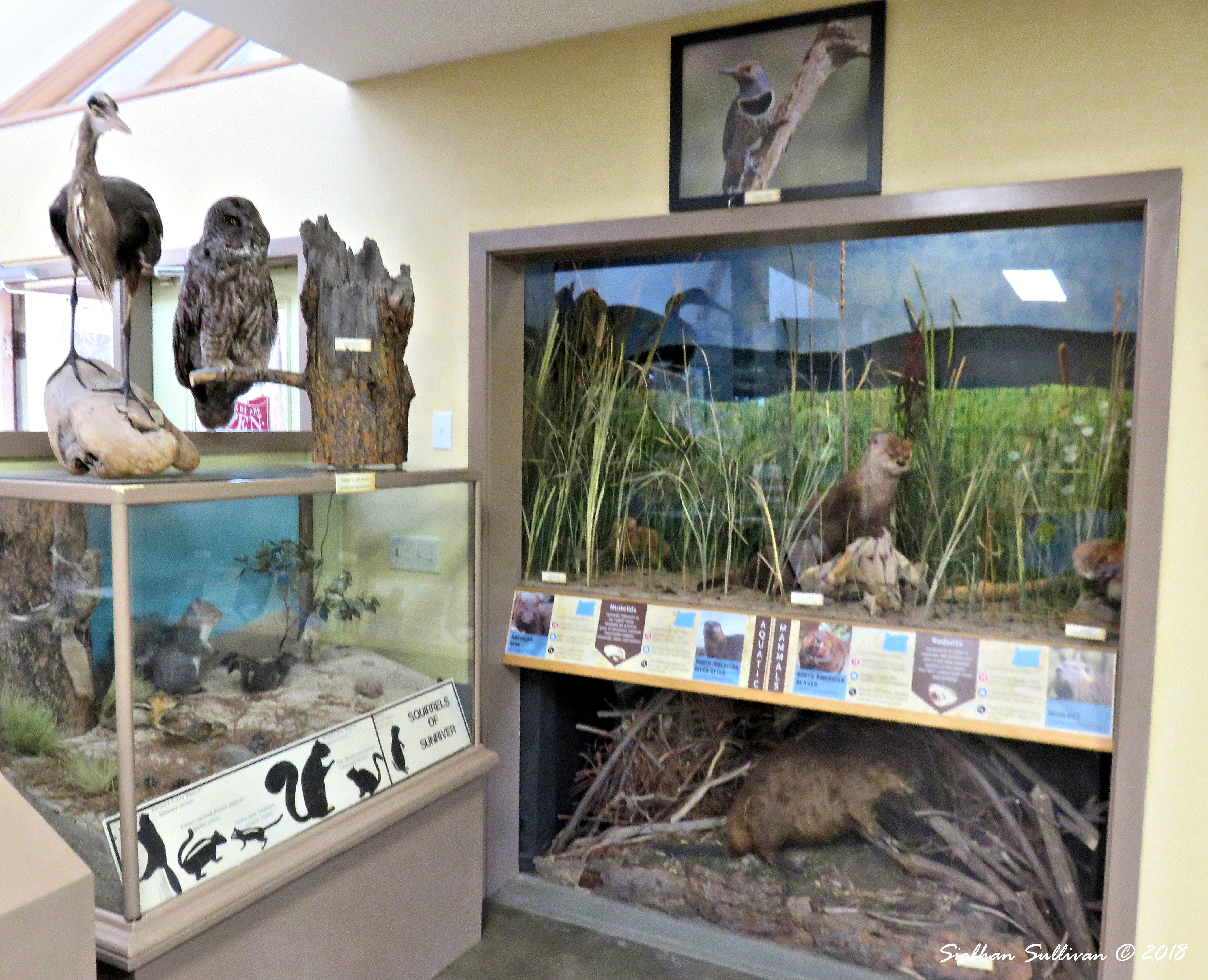 You can observe local wildlife by walking the trails on your own or going out with a guide. The Sam Osgood Nature Trail winds around the property. In the spring and summer keep an eye out for trumpeter swans. Guided bird walks take place every Saturday morning in the spring, summer, and fall. I have been on several of the walks. You’ll see waterfowl in the pond, raptors flying overhead, and songbirds along the walk. Great gray owls have been spotted in the area occasionally. You never know what you might spot on one of these walks.